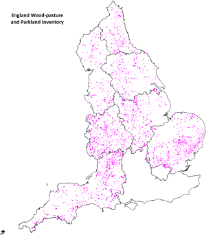 Wood-pasture and parkland inventory distribution map Regional distribution of wood-pasture and parkland Distribution of wood-pasture and parkland in Joint Character Areas Wood-pasture and parkland hotspots